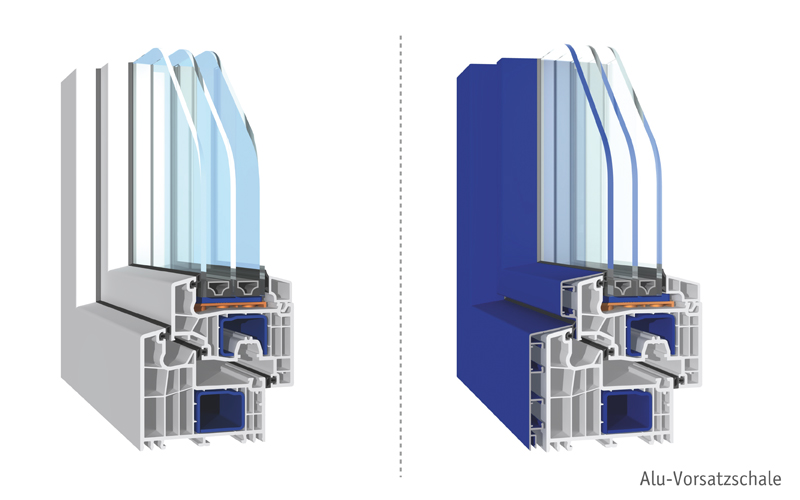 Zur optischen Veredelung: Für dekorative Fenstergestaltungen ist die KlimaPLUS-Aluvorsatzschale bestens geeignet, da beliebige Lackierungen, Pulverbeschichtungen und Eloxierungen möglich sind. Damit sind Ihren individuellen Designansprüchen keine Grenzen gesetzt.